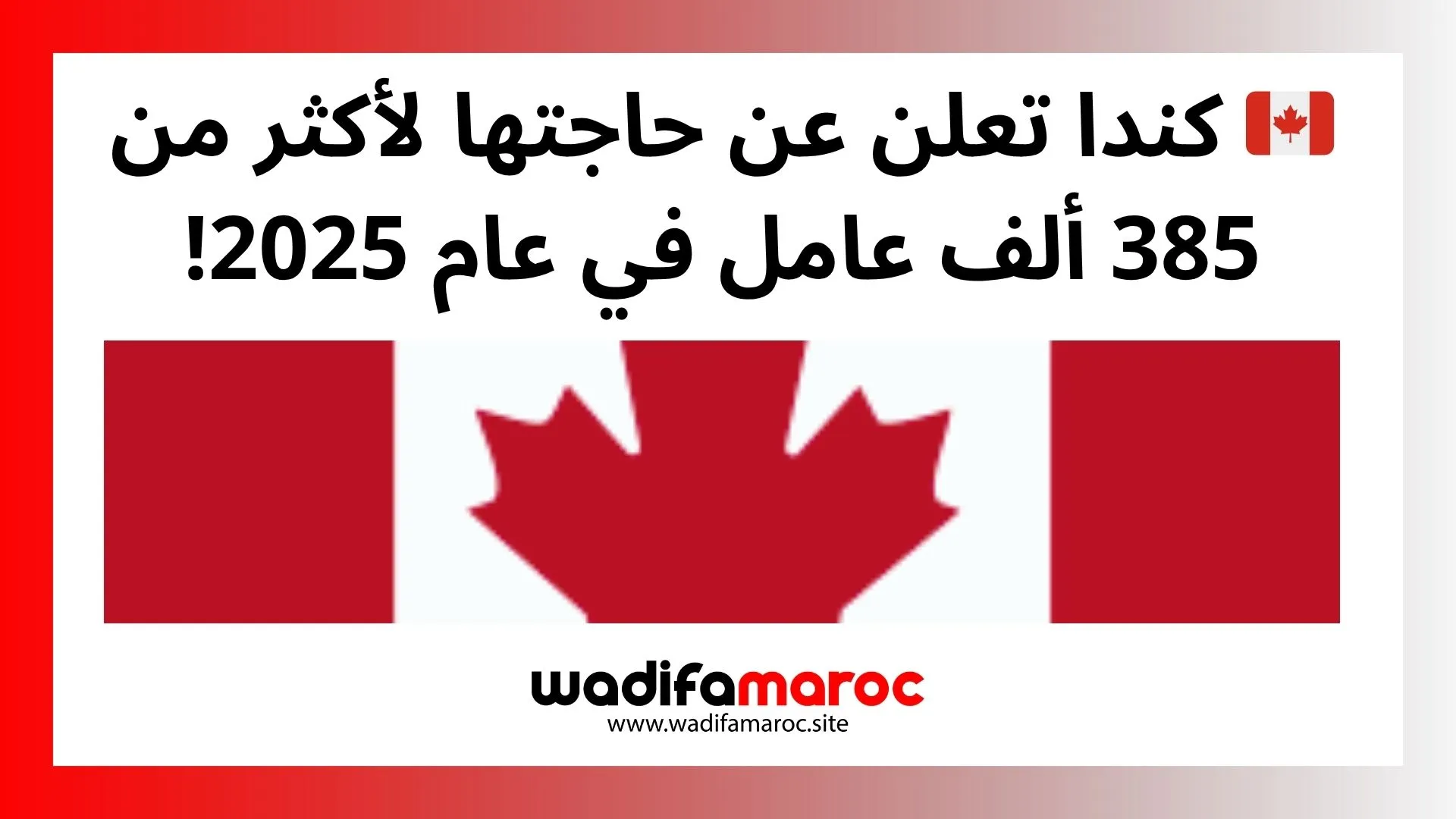 🇨🇦 كندا تعلن عن حاجتها لأكثر من 385 ألف عامل في عام 2025!