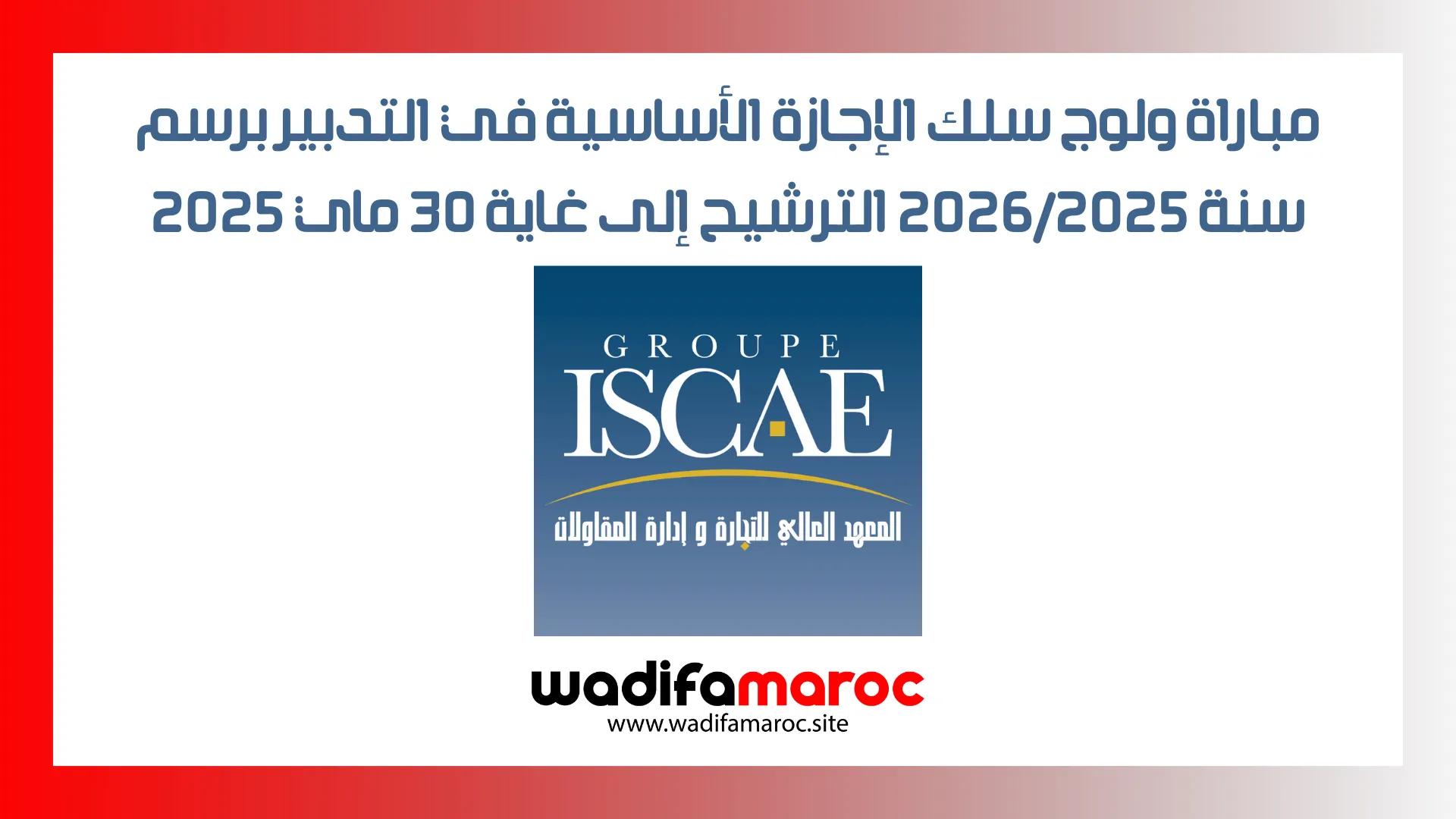 يُعلن Groupe ISCAE عن فتح باب الترشيح لاجتياز مباراة ولوج السنة الأولى من سلك الإجازة في التدبير لفائدة حاملي شهادة البكالوريا.