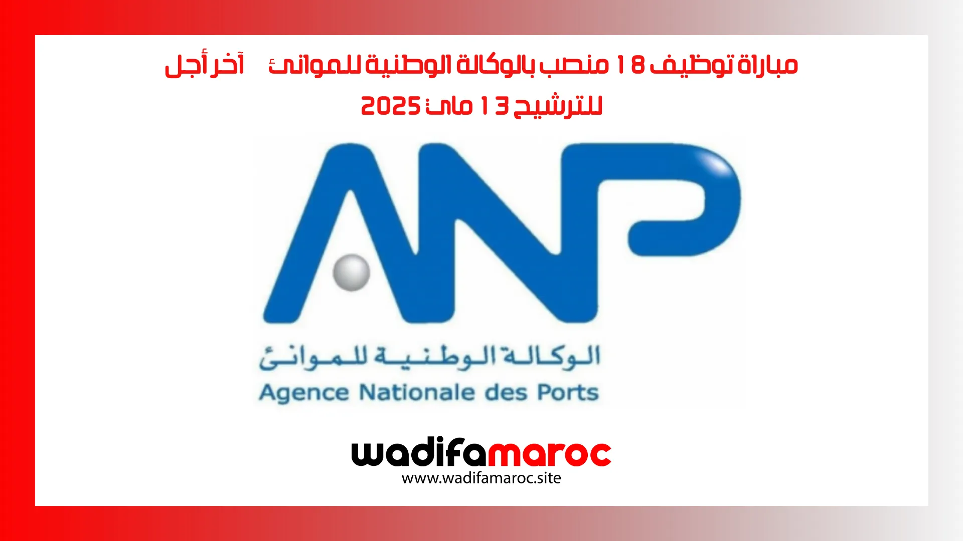 مباراة توظيف 18 منصب بالوكالة الوطنية للموانئ – آخر أجل للترشيح 13 ماي 2025